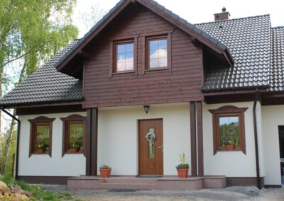 Stawiamy na wysoką jakość wykonania oraz sprawdzone, certyfikowane materiały, które przekładają się na trwałość, bezpieczeństwo i komfort użytkowania domu przez lata. Dzięki technologii prefabrykowanego szkieletu drewnianego możemy również zapewnić sprawną i szybką realizację inwestycji.